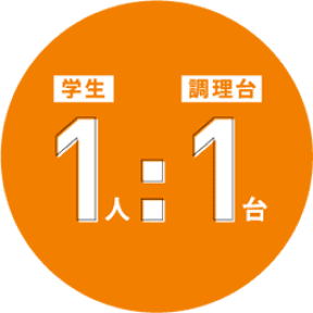最新の設備をそろえた本校オリジナルの実習室には、学⽣1⼈1台の調理台を完備。個々で実習に集中でき、技術の向上に最適な環境です。