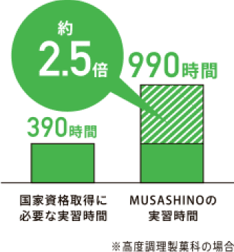 最大990時間に及ぶ実習中⼼のカリキュラム※で、即戦⼒として活躍できる技術を養います。