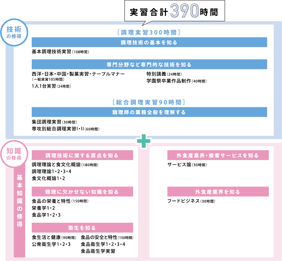 (※西洋料理コースはフレンチとイタリアン専攻に分かれ、それぞれ専門的に学びます。)