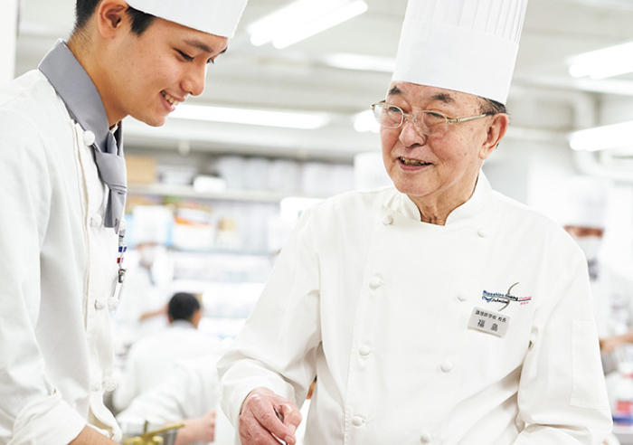 本校では、第一線で活躍している教授陣による徹底した技術習得と幅広い知識の吸収を実践しています。私自身もホテルニューオータニで総料理長を務めていました。全国にある調理師学校の中でもプロが校長を務めるのは数少なく、誇りに思っています。私が料理の世界に入った時代は、毎日少しでも多くのものを得ようと一生懸命でした。しかし、本校ではプロの料理人から食に関するあらゆることを学ぶことができます。武蔵野調理師専門学校で食のプロをめざし、一緒に世界をもっとおいしくしましょう。
