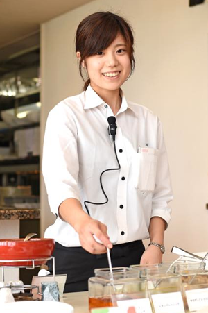卒業後はパティシエとして勤務しましたが、その後、いまの会社に転職し、結婚式やレストランでのサービスと接客を中心に仕事をしています。接客においては、マニュアルは基本的に役立ちません。目の前の人を見て、その人に合わせた対応が重要。最初から決め付けず、たくさん見て、聞いて、ベストなサービスを提供するように心がけています。将来は小さくてもいいので、一人で居酒屋を経営できれば素敵だなと考えています。そのためにはお金を貯めなくてはいけませんね(笑)。後輩のみなさんには、あまり職業の選択肢を狭めないでほしいです。ダブルプログラム科=パティシエがすべてではありません。武蔵野で学んだ技術と知識は、幅広い業界で求められますよ。